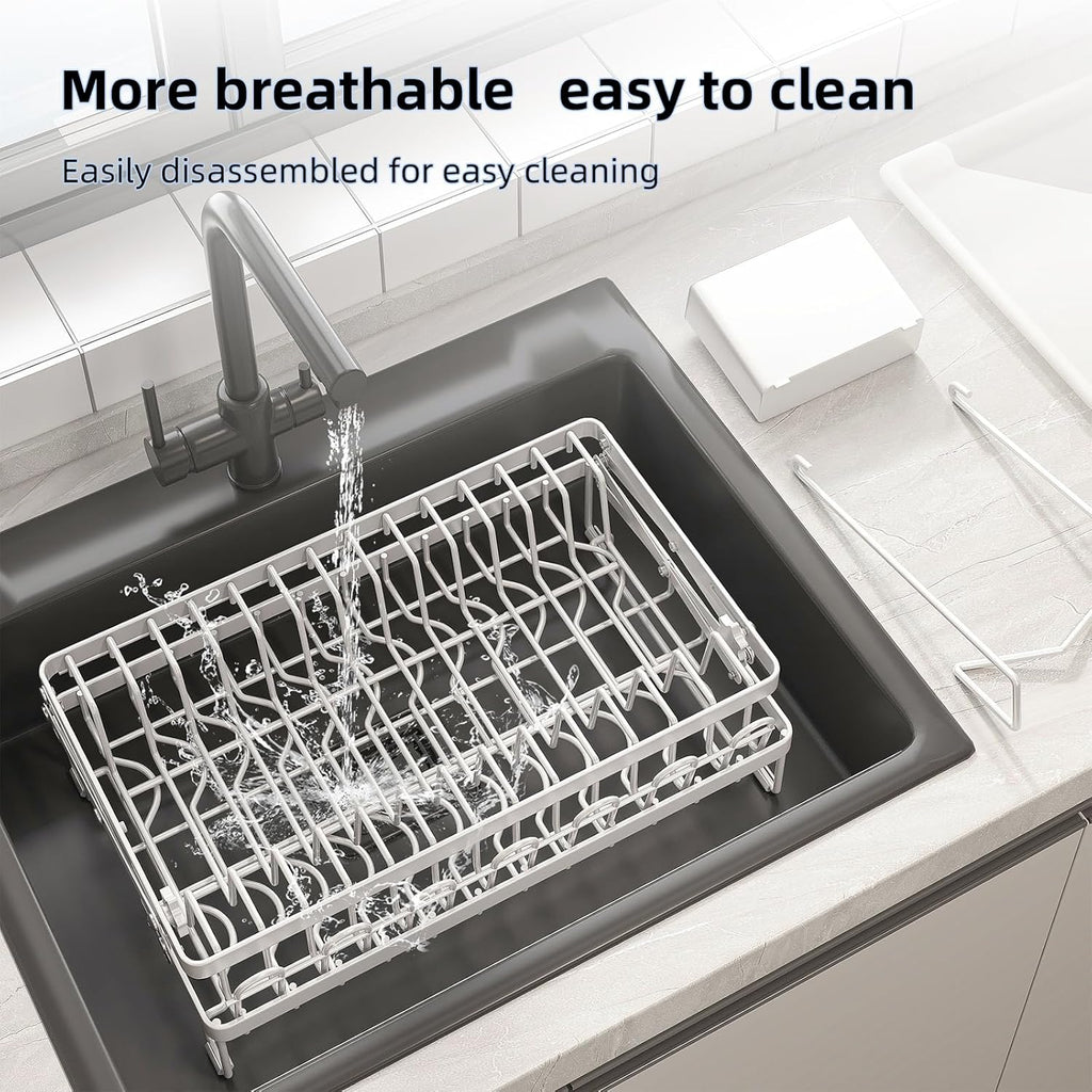 2-Tier Dish Drying Rack with Drainage Tray, Utensil Holder, Cup Hooks & Cutting Board Rack for Kitchen (White)
