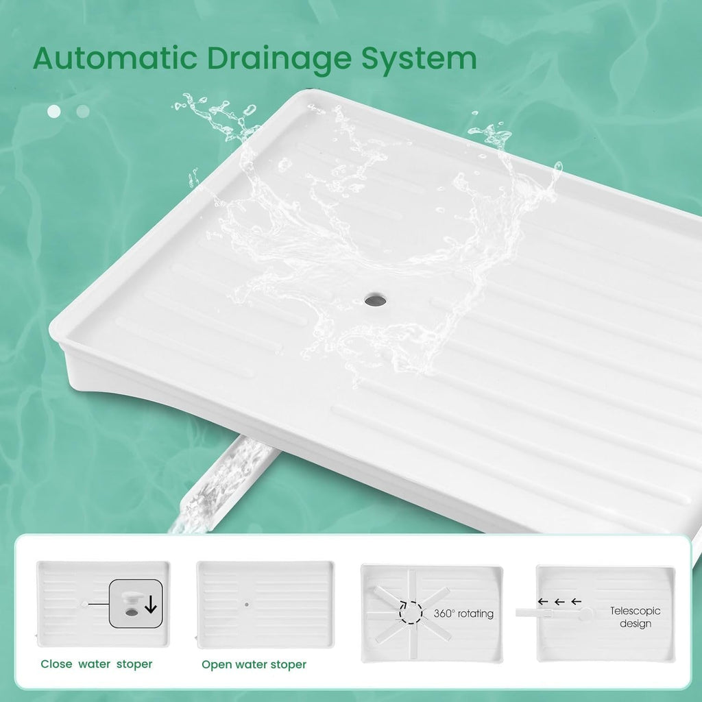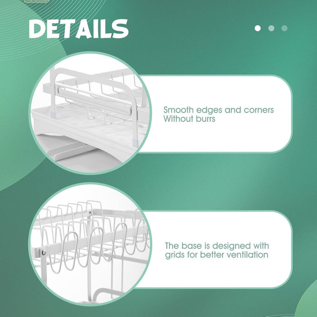 2-Tier Dish Drying Rack with Drainage Tray, Utensil Holder, Cup Hooks & Cutting Board Slot for Countertop Kitchen Storage (White)