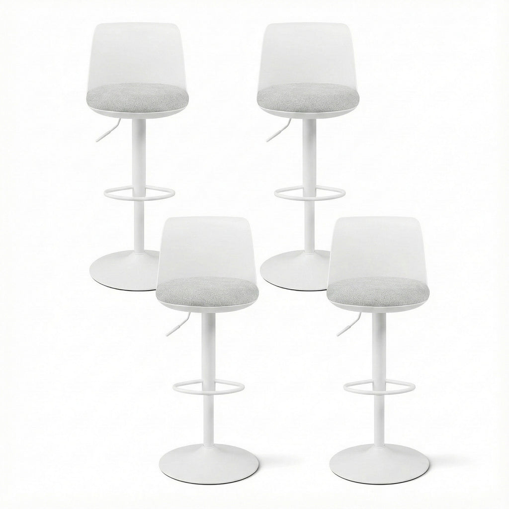 Upgrade your home with this stylish and functional set of 4 bar stools. Featuring adjustable seat height (64cm-85cm), these stools cater to various seating needs, whether for a kitchen counter or bar top. The ergonomic curved backrest and thick foam padding ensure maximum comfort, while the premium faux linen fabric adds a sophisticated touch to your decor. Built with a reinforced gas lift cylinder and sturdy metal construction, each stool supports up to 120kg. The semi-circular footrest ring enhances comfort, and anti-slip floor protectors safeguard your floors. Assembly is quick and easy, making these stools the perfect choice for any modern home.