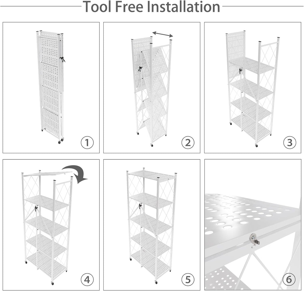 5-Tier Foldable Storage Shelf with Wheels for Kitchen, Garage, Pantry or Basement (White)