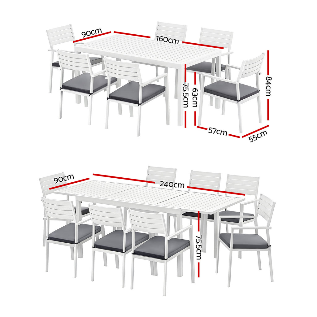 Enjoy alfresco dining with the Outdoor Dining Set 9PCS, a stylish and durable solution for your patio or garden. Crafted from powder-coated aluminium, this extendable table and chair set combines practicality with comfort, perfect for gatherings all year round.