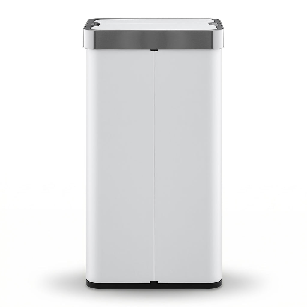 Hands-free operation opens the lid at 15–25 cm and closes after 5 seconds, with manual buttons for control. The dual wing lid fits under low benches, soft-close lid lowers quietly, and built-in bag holder keeps liners secure. Durable ABS body with stainless steel frame makes this kitchen rubbish bin practical and convenient for busy homes.