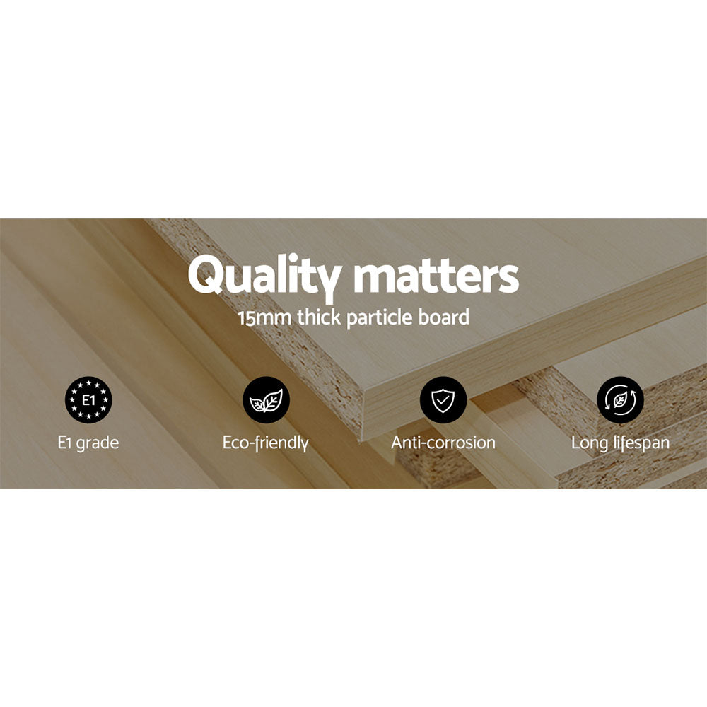 Want to add a WOW-effect to your living room? Our LED entertainment unit won’t disappoint you. Boasting a unique combination of functionality and creativity, this entertainment unit is designed to enhance your living space and create a pleasant ambience. The entertainment unit features built-in RGB LED lighting that you can customise into 16 different colours and four flashing modes with a touch of a button. It will perfectly complement your modern home décor and enable you to achieve a one-of-a-kind look. Having been constructed from 15mm thick particle board with UV high gloss on the front and melamine finish, this piece of furniture is quite sturdy and will withstand the test of time. It has spacious drawers with smooth metal runners for hassle-free operation and two tempered glass shelves to store all your entertainment paraphernalia. Bring this uniquely designed entertainment unit for your home today.