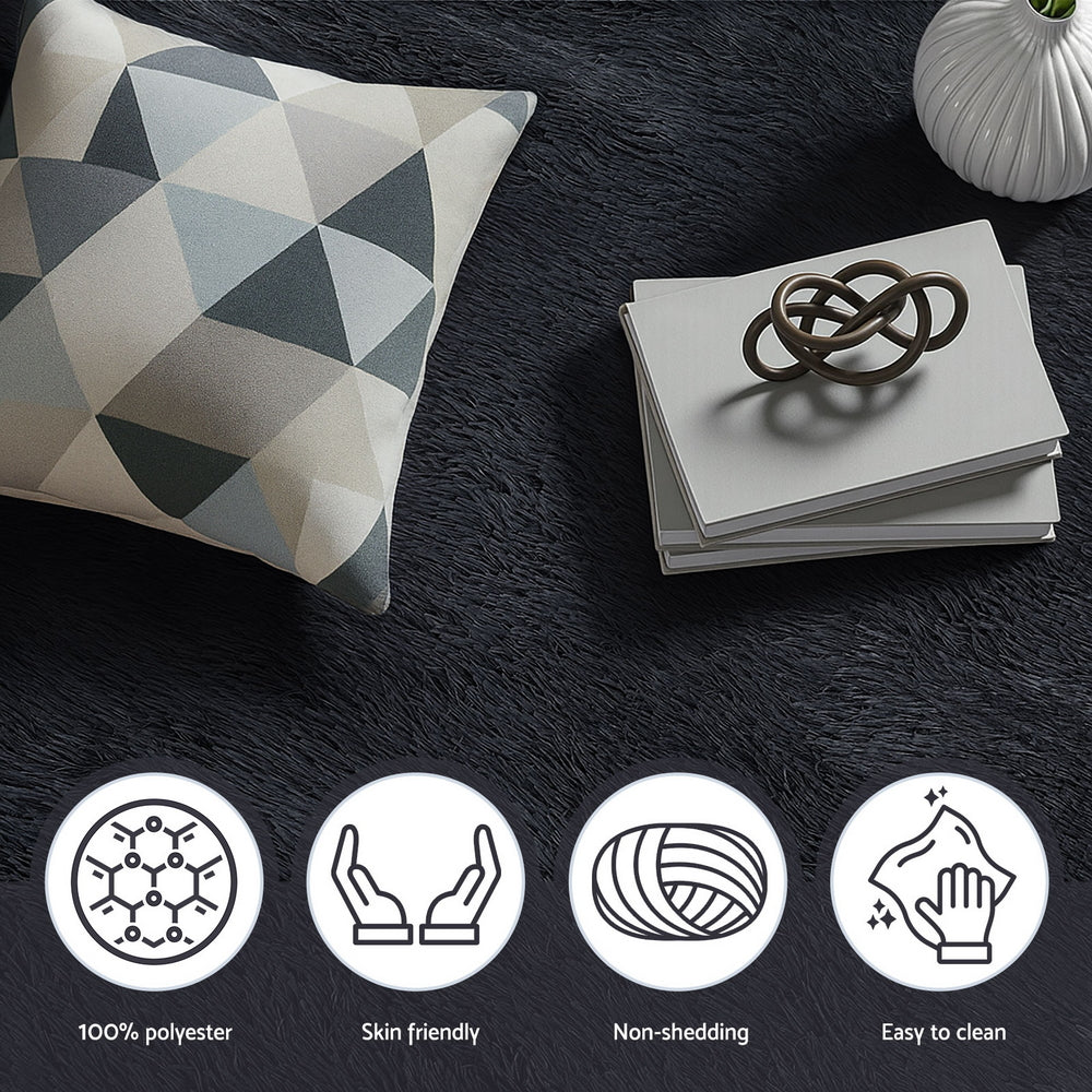 Step onto pure luxury with the Shaggy Rug. This plush area rug features a deep, soft pile with built-in foam cushioning for ultimate comfort. Its modern black design and anti-slip backing make it the perfect floor carpet for any living room or bedroom, adding warmth and style.