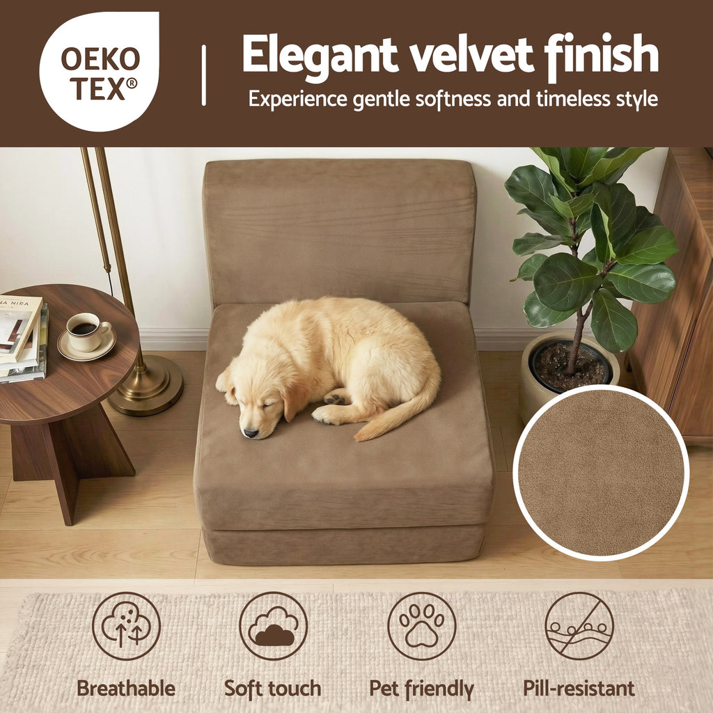 Enhance your living space with the Folding Sofa Bed Convertible Armless Foam Floor Futon Lounger Couch in Brown, a practical and stylish solution for flexible seating and sleeping. Its adaptable design ensures comfort whether you are lounging, working, gaming, or hosting overnight visitors, all while adding a touch of modern elegance to your home.