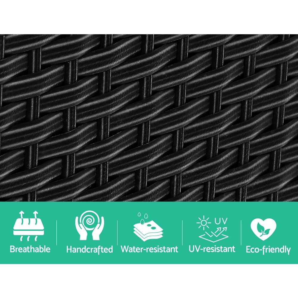 With its cool modern vibes, our wonderful Tete-a-tete Set is just perfect to spend the day with your bestie. Equally stylish and appealing when used indoors or outdoors, our wicker set is designed to please and create a sense of exotic chic. With two integrated armchairs and an adjoining table, the ensemble features a strong inherent structure with ample weight capacities for armchairs and table. The UV-resistant and weather-resistant PE wicker is meticulously weaved to bring out the exceptional workmanship and the chairs exude luxurious comfort with high-density foam cushions. Better still, the table features a double-deck design for extra storage space with a 5mm thick tempered glass tabletop for a sleek look and easy maintenance. Not least, the powder-coated steel frame ensures that corrosion and rust are never an issue with this elegant set.