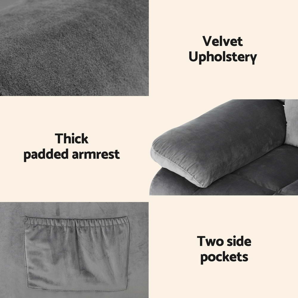 Sit back and relax with the Recliner Chair. With its 8-point massage and 2-point heating function, you can get soothing massages with the recliner at all the right places. Upholstered in fine-quality velvet fabric, the recliner is an oasis for plush comfort. High-resilience sponge padding lets you float away on a cloud of comfort and relaxation. The sturdy steel base allows a weight capacity of up to 150kg. The contoured backrest provides good support with multi-angle tilt adjustment to suit different sitting positions for your favourite activities. An adjustable footrest lets you put your feet up in style. You will also enjoy the ultra-wide armrests and two large side pockets to keep all your lounging essentials close at hand. Not least, it comes with a handy remote control to turn on everything at your fingertips.