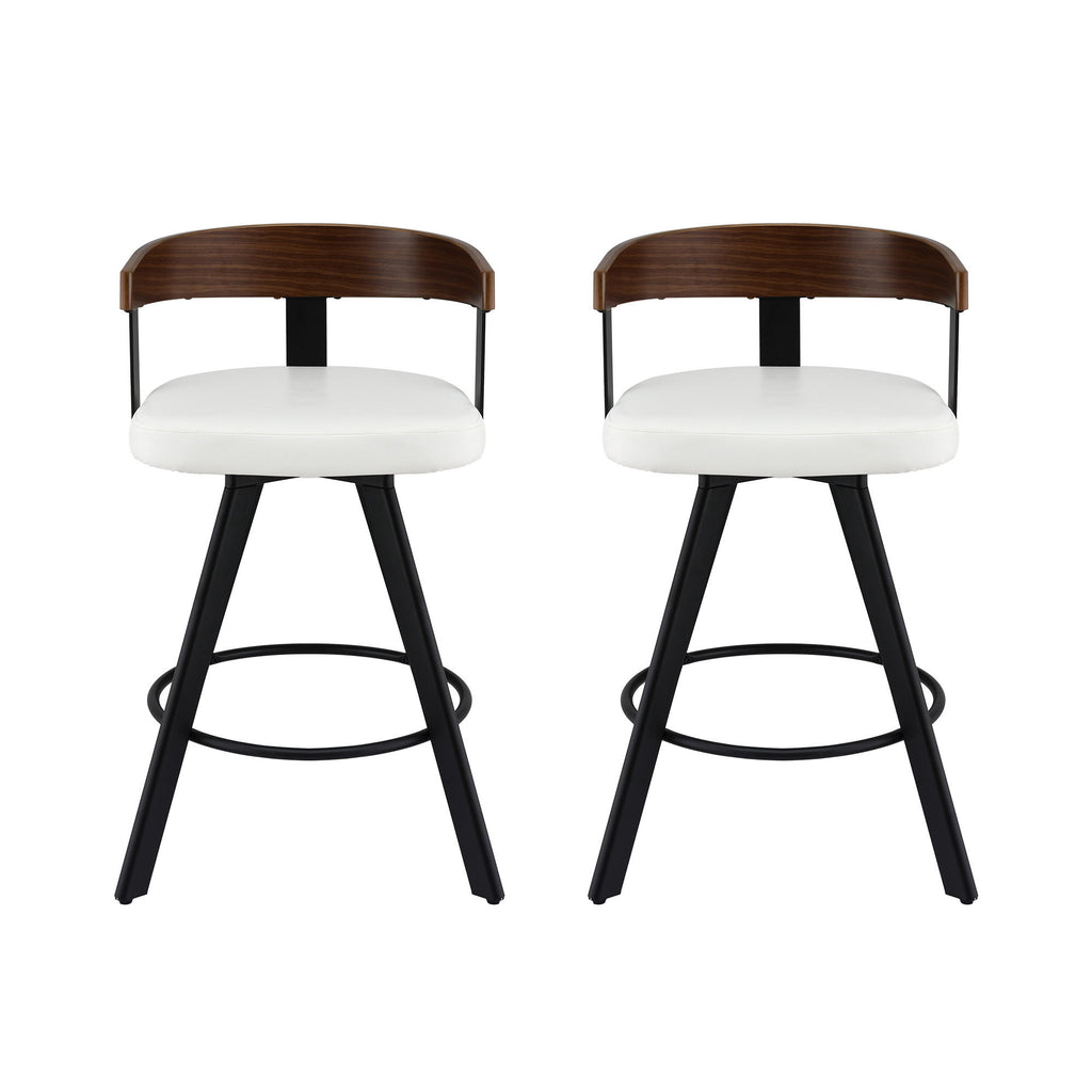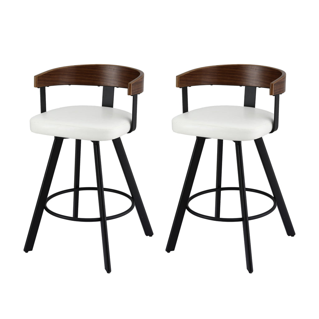 Enhance your kitchen or bar area with these stylish 2x Bar Stools featuring a 360° swivel seat for ease of movement and a comfortable bentwood backrest. The combination of white PU leather and walnut finish adds a touch of modern sophistication while the sturdy metal legs ensure lasting stability.