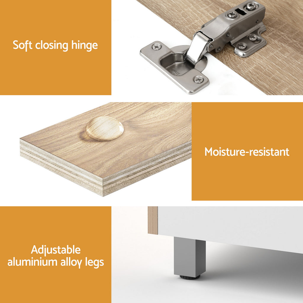 Enhance your bathroom with this elegant freestanding vanity unit that combines practical storage solutions with a sleek, modern aesthetic. Designed to complement any contemporary bathroom, it offers both style and durability in one compact piece.